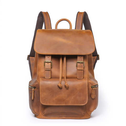 Mochila de cuero de ganado con logotipo personalizado para hombre, bolso Vintage para ordenador portátil, mochila de cuero a la moda, Mochila De Cuero Crazy Horse para hombre