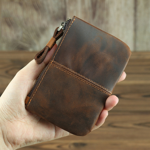 Cartera delgada de cuero genuino personalizada, tarjetero, funda de débito y crédito, monedero de cuero Crazy Horse con cremallera para hombre