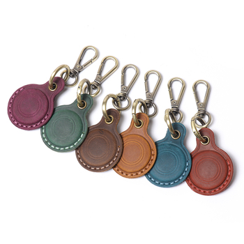 Vintage Crazy Horse Leather Air Tag Case Hanging Closure Type Access Card Holder for Apple Air Tag