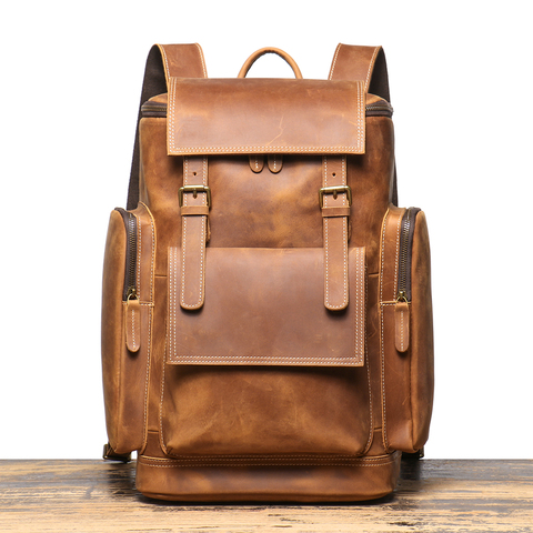 Zaino da viaggio in pelle da uomo Vintage borsa per Laptop con Logo in rilievo grande zaino in pelle di cavallo pazzo da uomo